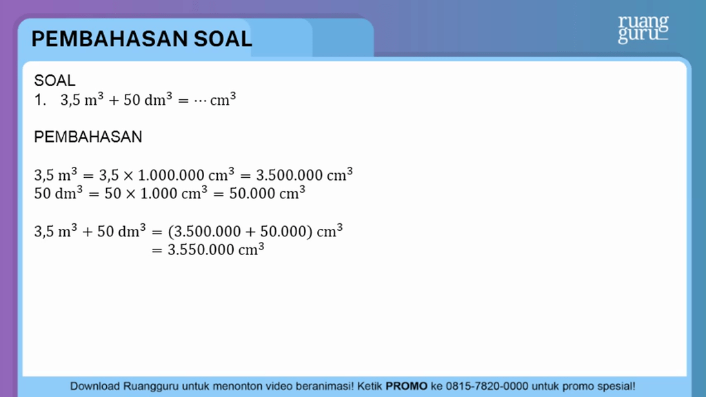 Contoh Soal Satuan Volume Matematika Kelas 6 Sd